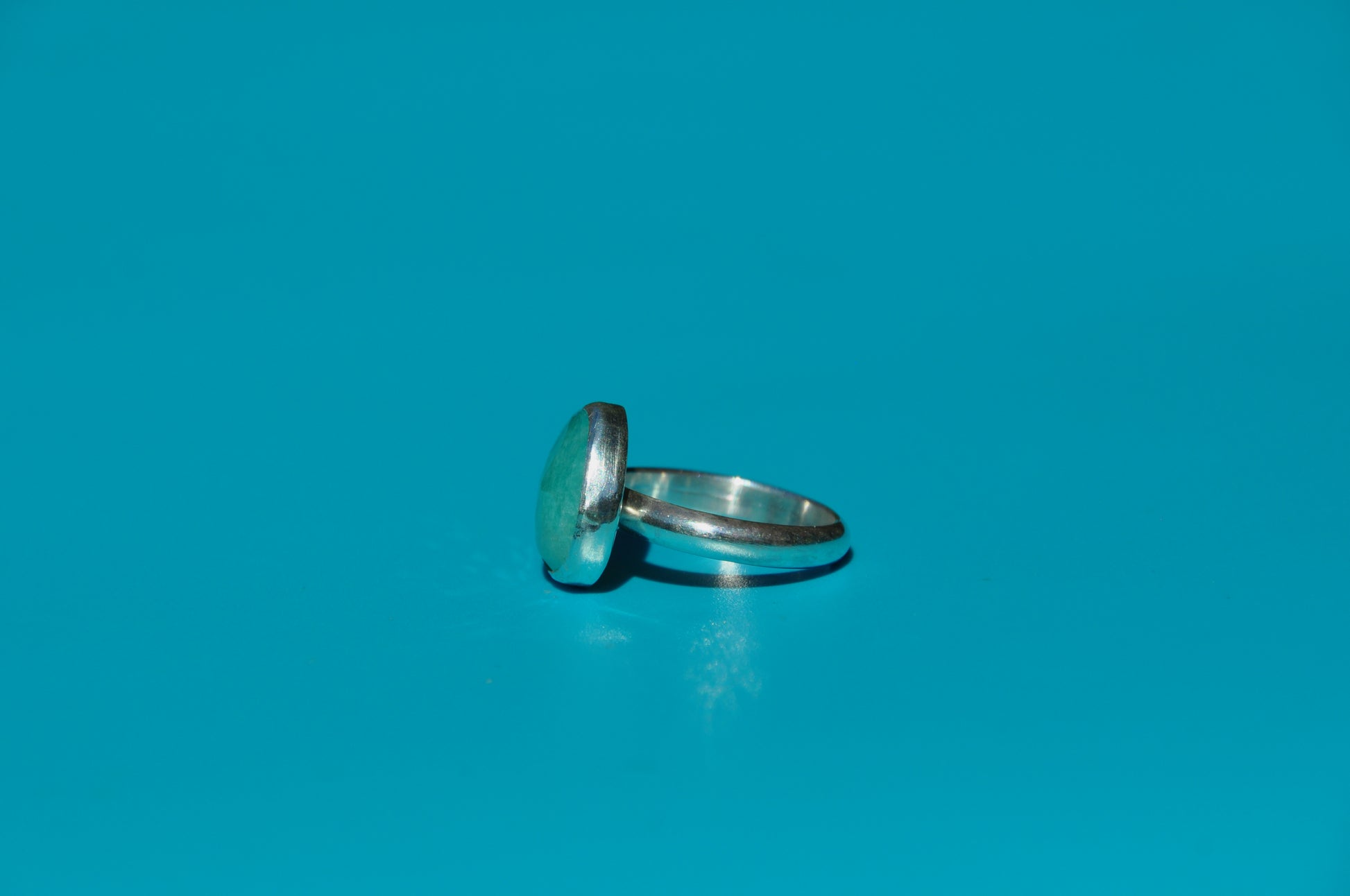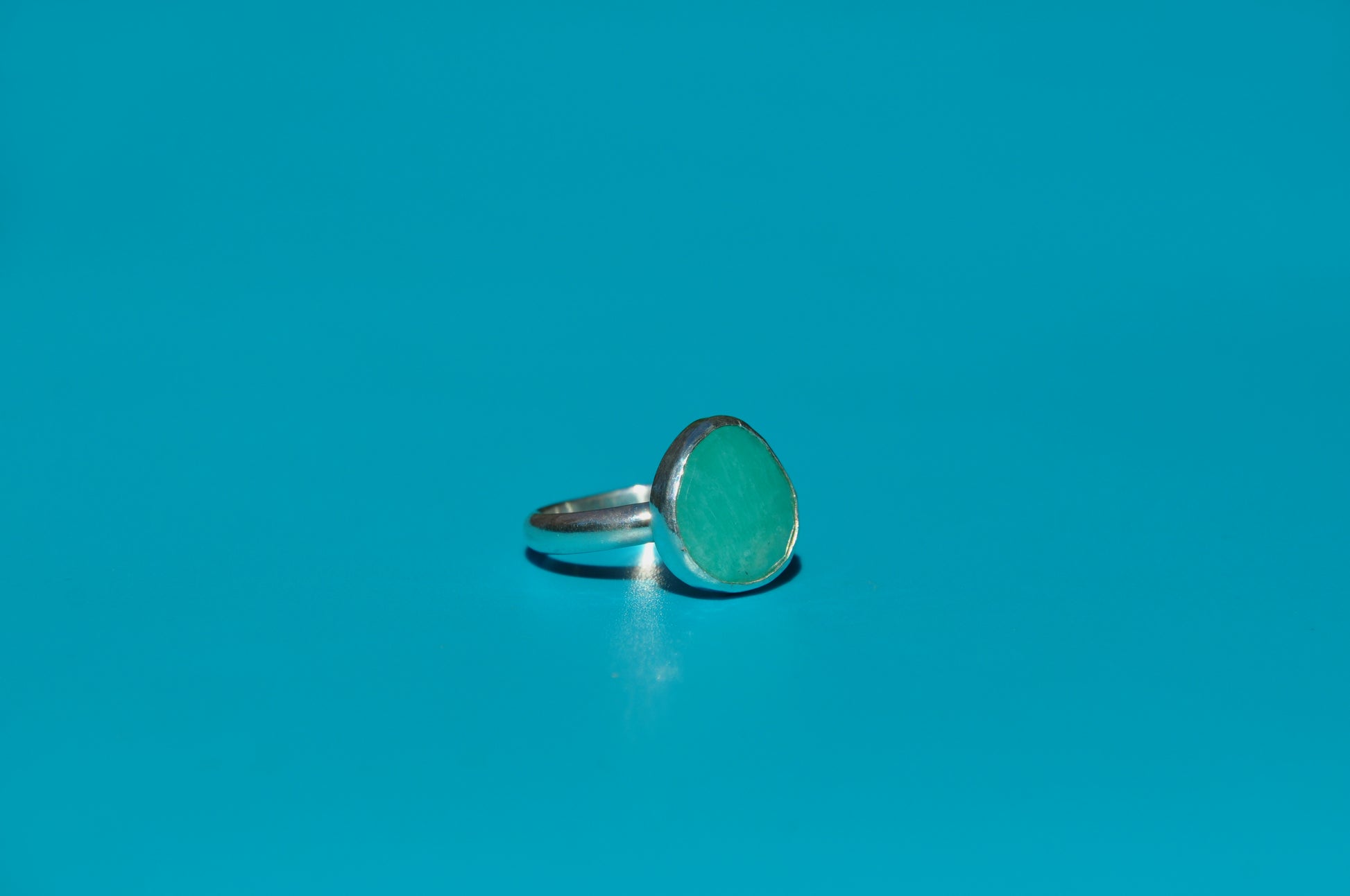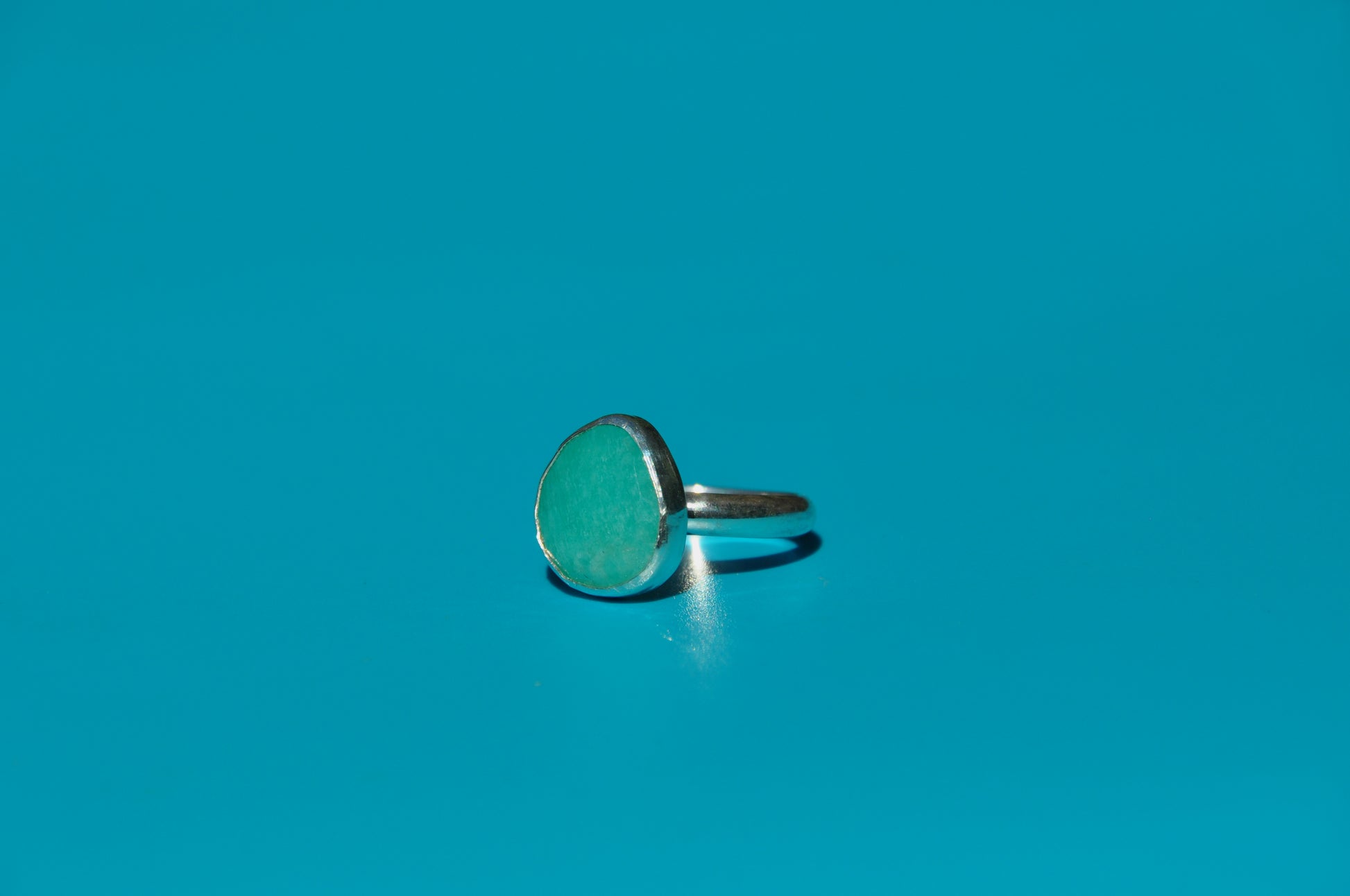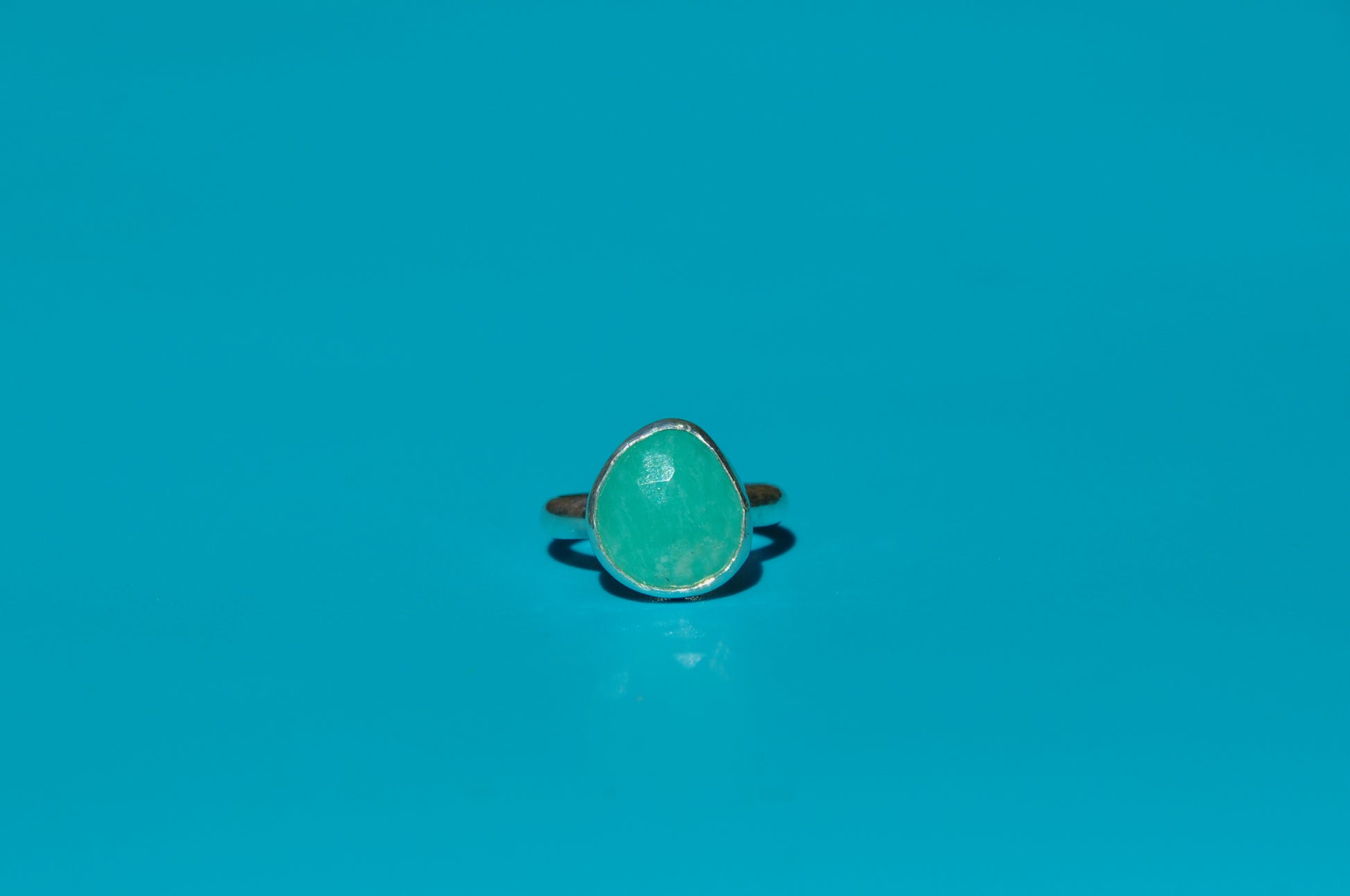 Amazonite rose cut freeform gemstone bezel set into a simple .925 sterling silver ring.