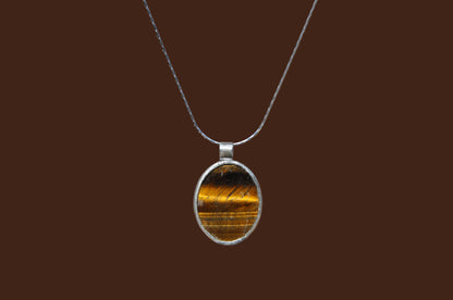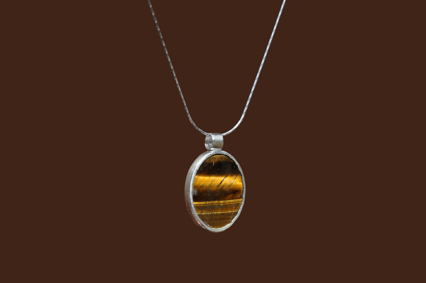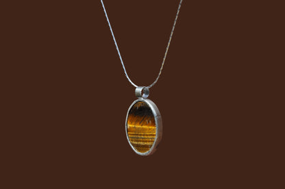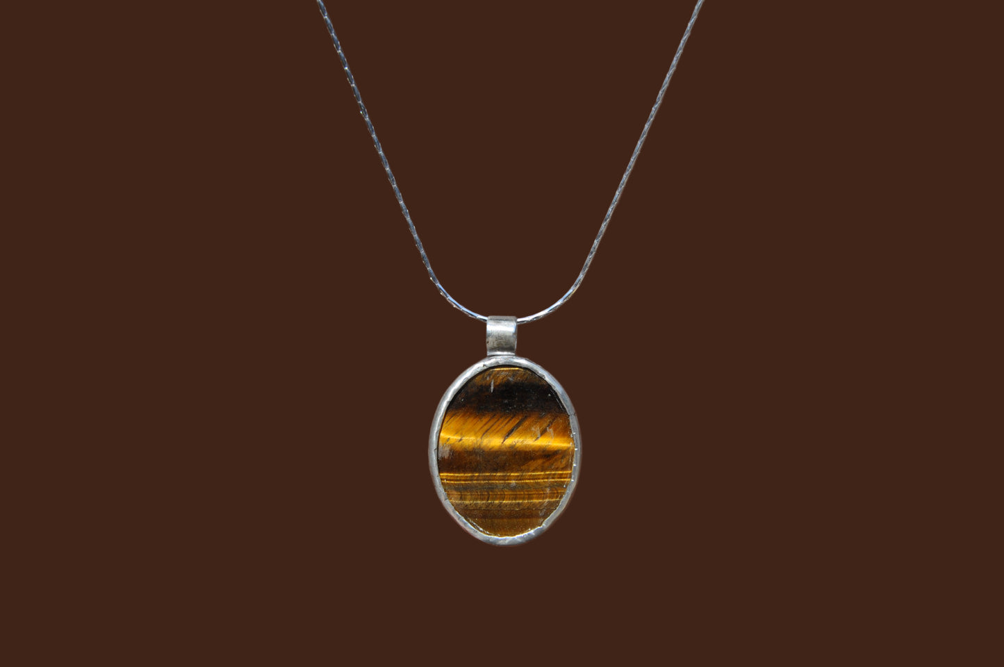 This chatoyant oval tiger's eye stone has beautiful streaks. Bezel set into a simple beautiful 925 sterling silver pendant. Chain included.