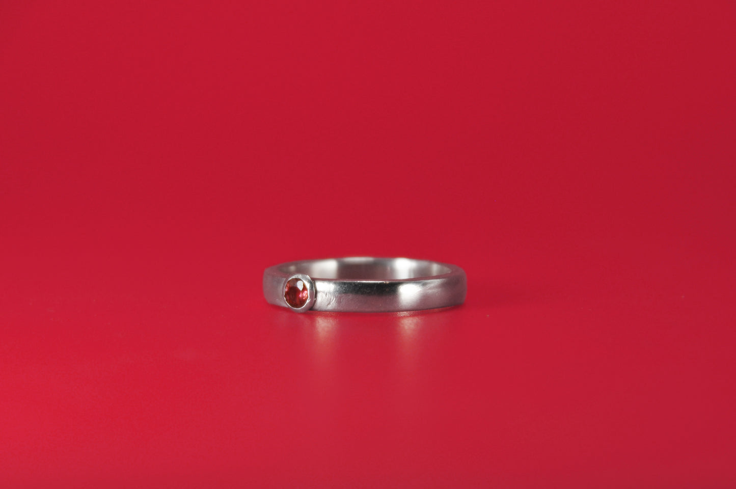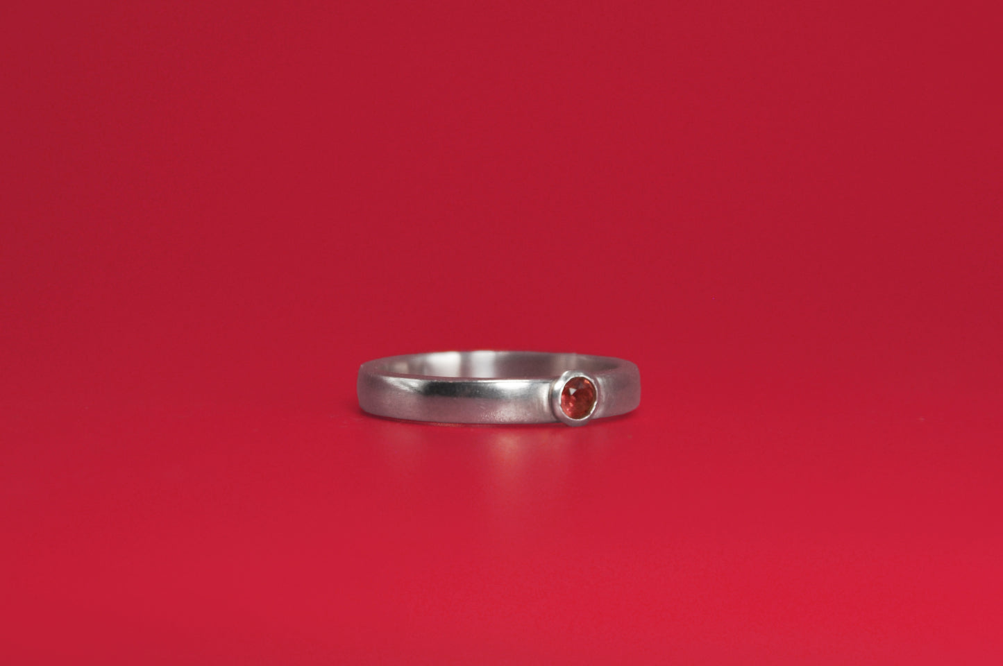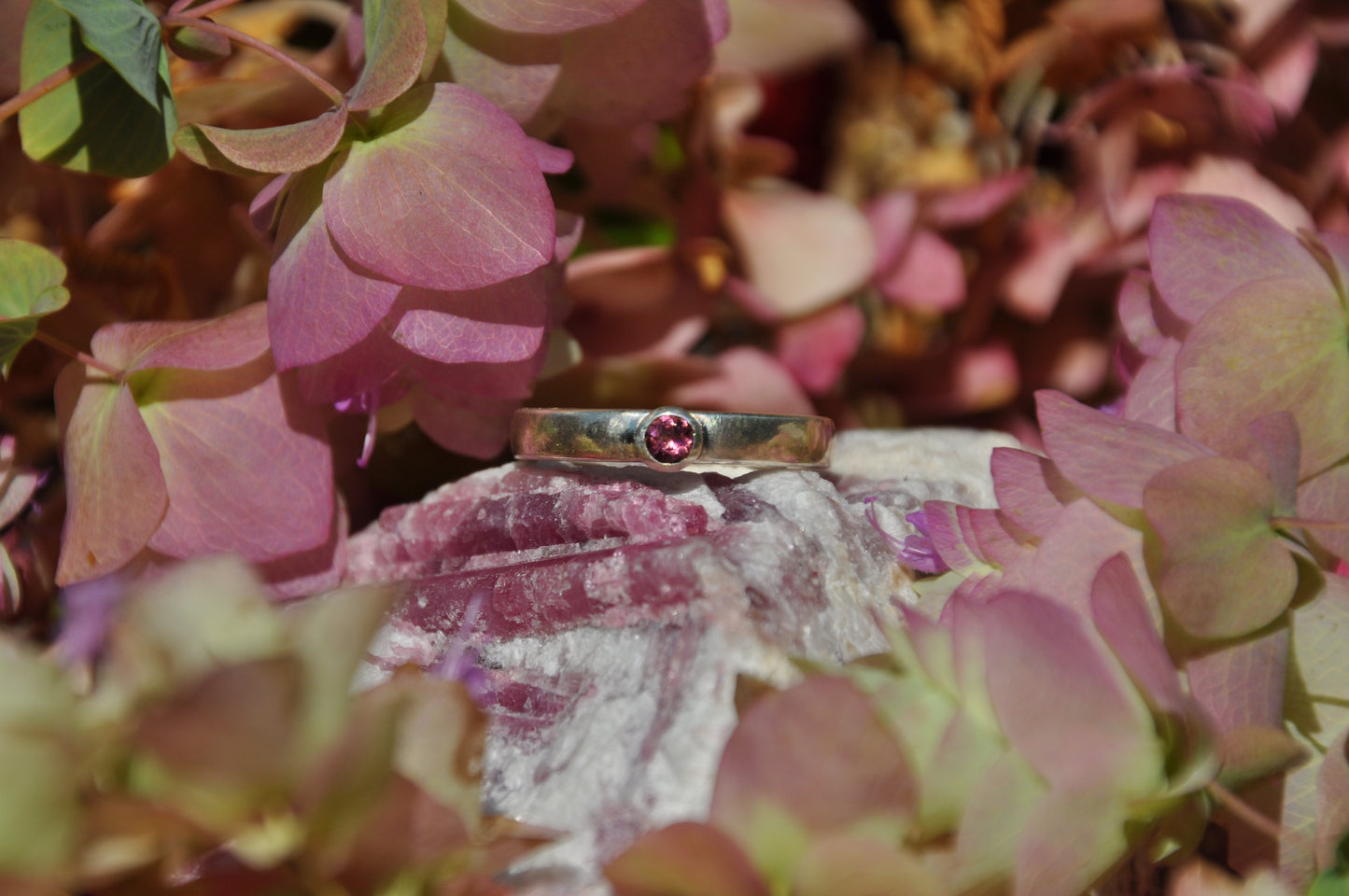 Beautiful natural pink tourmaline tube set in a simple little sterling silver ring.