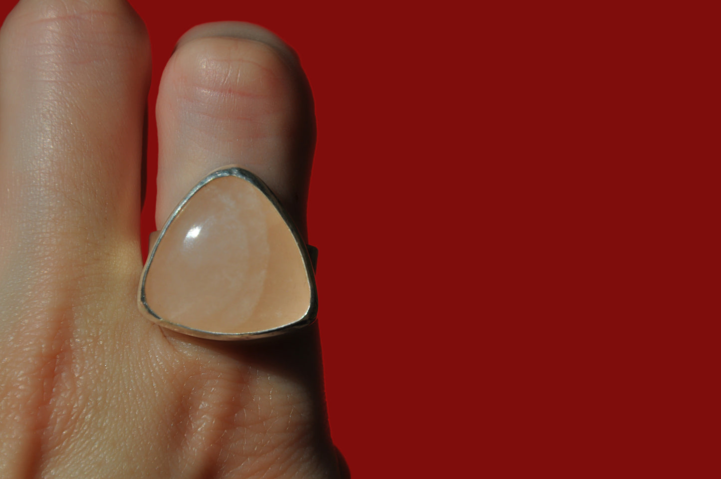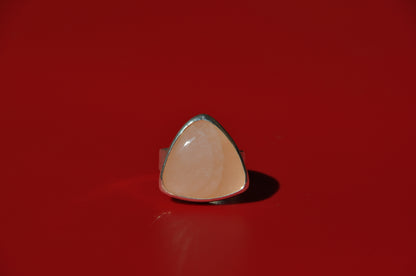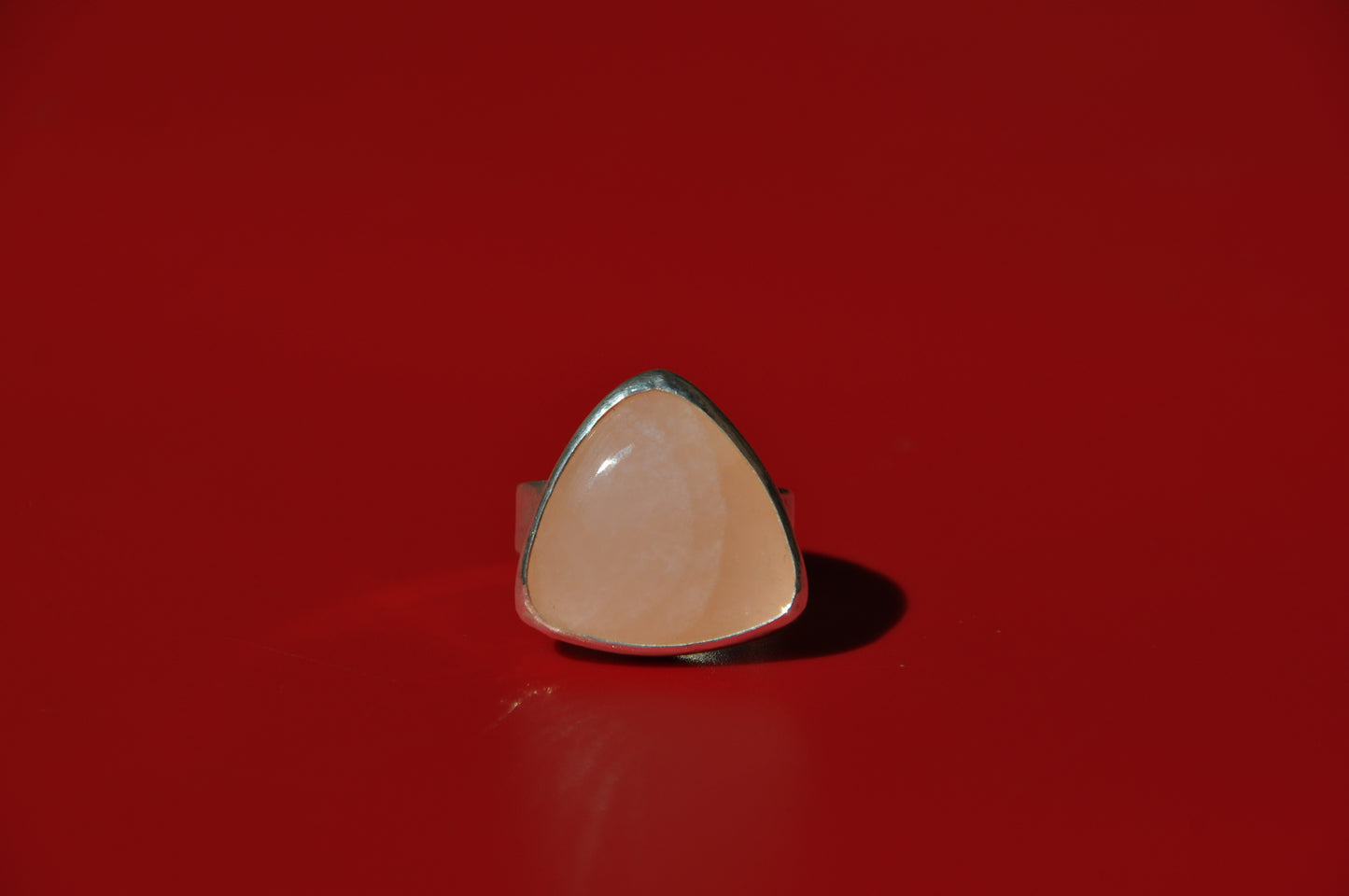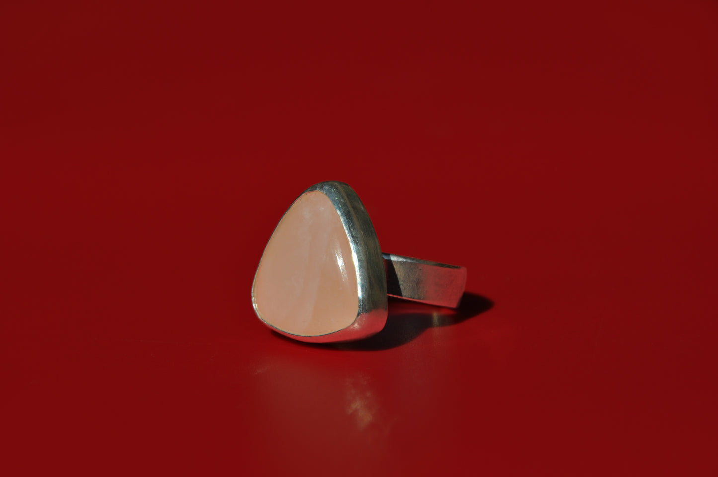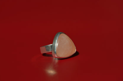 Rose quartz triangle gemstone bezel set in a simple 925 sterling silver statement ring