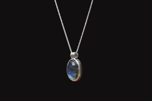 Rose Cut Labradorite Oval Sterling Silver Pendant Necklace