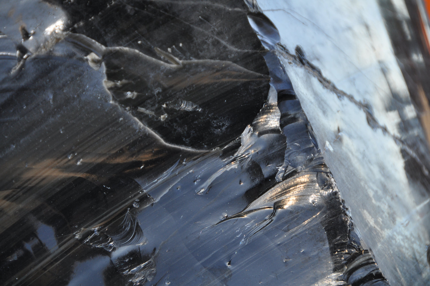 Obsidian is a natural glass, considered to be a rock, that is formed by volcanic activity. Because of the sharpness of its edges when broken, obsidian has been used in weapons and tools like knives and arrowheads. It is often used in Native American jewelry. Sometimes, obsidian forms with gas bubble inclusions. These are known as sheen obsidians.