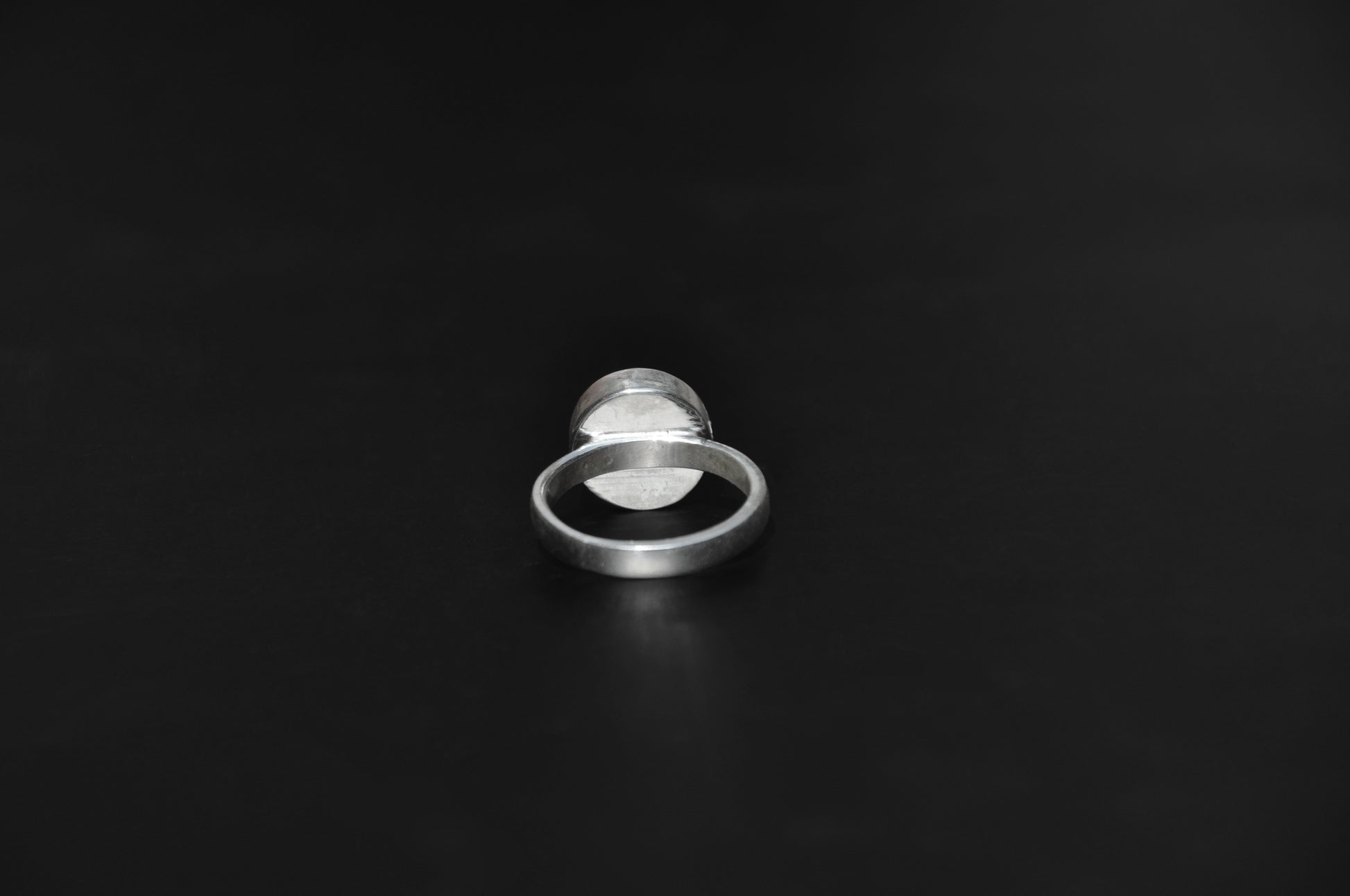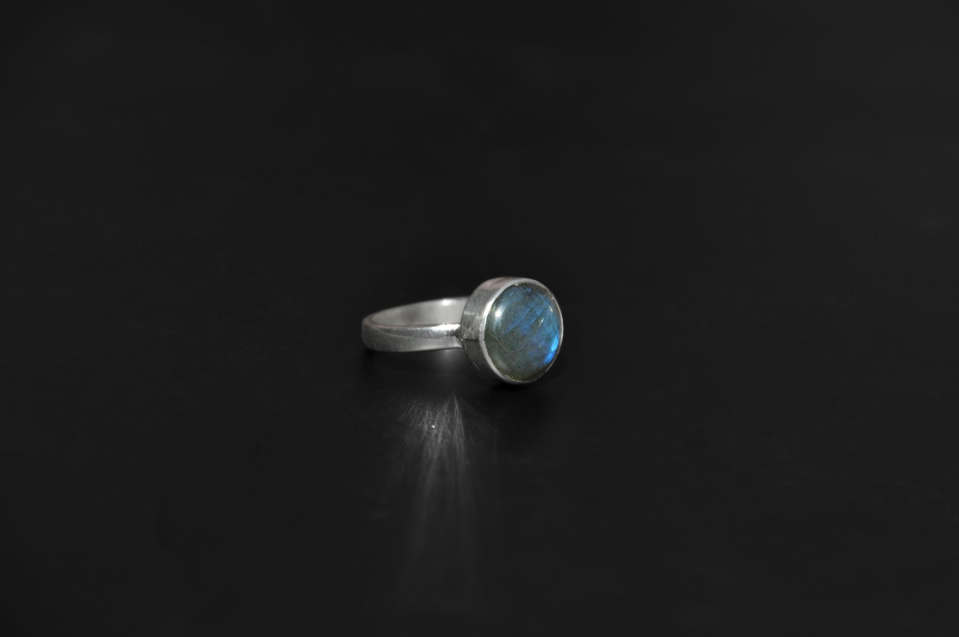 Stunning round labradorite with blue fire bezel set into a simple 925 sterling silver ring. Stone may vary slightly.