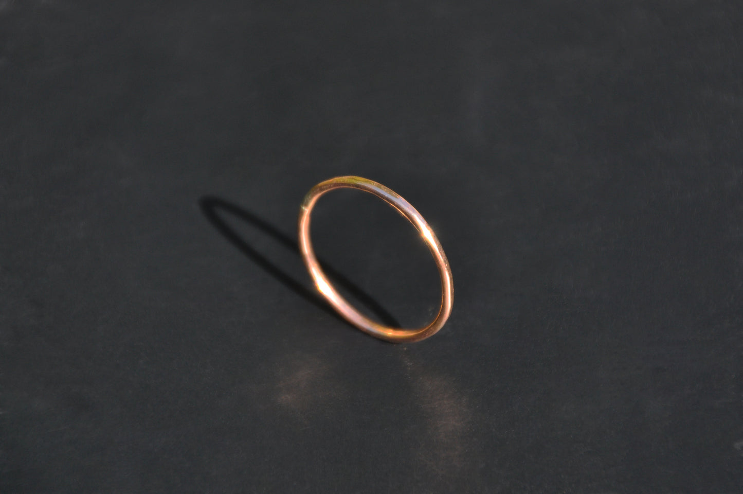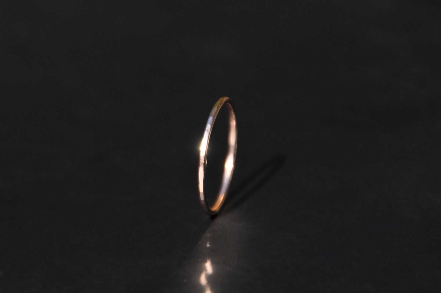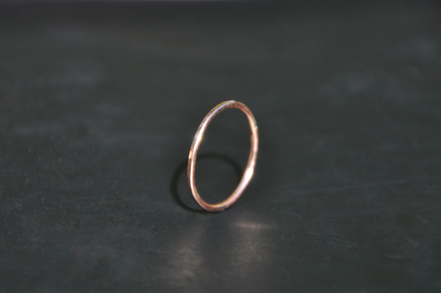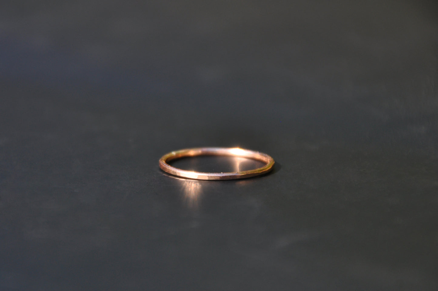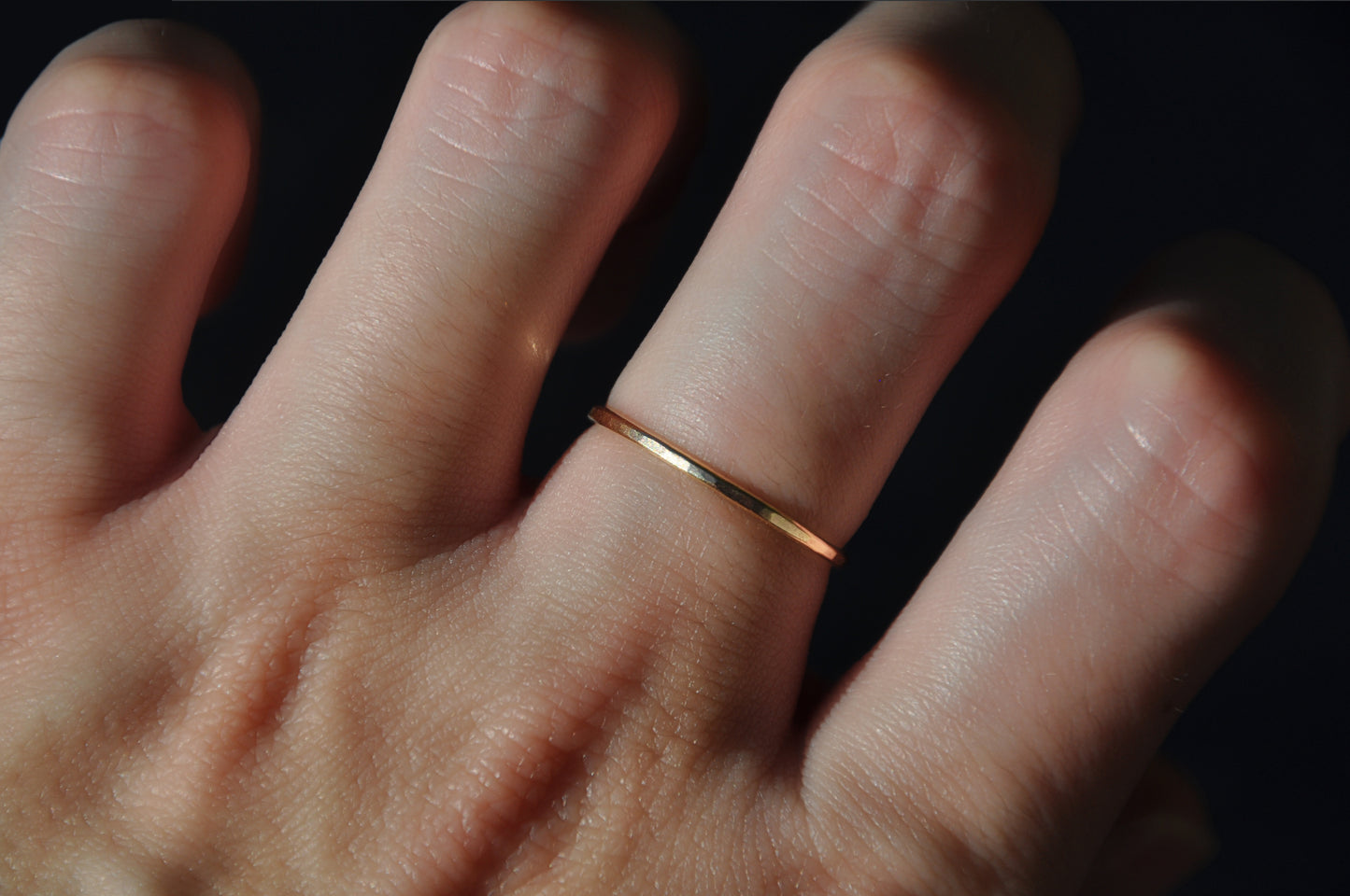 A thin gold-filled band ring, hammered for texture. It is gold that is heat and pressure bonded to a base metal. This means the gold does not wear off. Gold-filled is hypoallergenic. Comes in a variety of sizes.